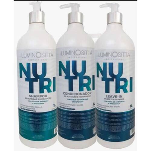Linha Nutri Com óleo de amêndoa e macadâmia. A linha nutri da Luminosittà tem formulação balanceada, limpa e hidrata profundamente os fios. Para todos os tipos dr cabelos e especialmente para cabelos ressecados ou quimicamente tratados. Hidrata, revitaliza e deixa os cabelos com brilho intenso. Shampoo, Condicionador e Leave-in de 1 Litro. COR: BRANCO Ean: 7898516162946