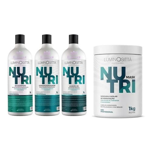 Kit Nutri Hidratação Profunda Completa 4 Passos 1L Luminositta Linha Nutri Com óleo de amêndoa e macadâmia. A linha nutri da Luminosittà tem formulação balanceada, limpa e hidrata profundamente os fios. Para todos os tipos dr cabelos e especialmente para cabelos ressecados ou quimicamente tratados. Hidrata, revitaliza e deixa os cabelos com brilho intenso. Linha Nutri Com óleo de amêndoa e macadâmia. LINHA NUTRI