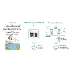 Over Nite é indicado na ciclagem de aquários novos ou na manutenção da qualidade da água de aquários de água doce ou salgada. Seu uso introduz instantaneamente milhões de bactérias vivas no sistema, permitindo assim começar a colocar peixes no aquário imediatamente, eliminando rapidamente substâncias nocivas tais como a amônia e o nitrito. Também inibe o desenvolvimento de patógenos que podem vir a atacar os habitantes do aquário, aumentando a imunidade dos peixes.