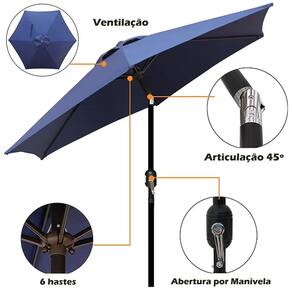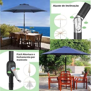 ( Fácil Operação ) O ombrelone facilita o uso. Basta girar a manivela para abrir o ombrelone. Caso deseja alterar a inclinação da cobertura é só pressionar o botão na articulação.