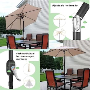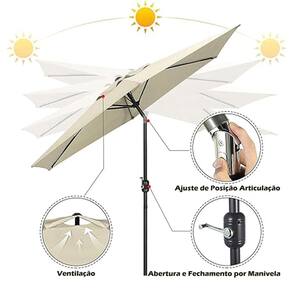 ( Fácil Operação ) O ombrelone facilita o uso. Basta girar a manivela para abrir o ombrelone. Caso deseja alterar a inclinação da cobertura é só pressionar o botão na articulação.