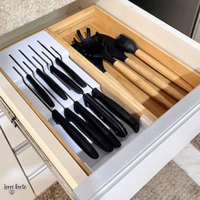 ASPEN DECOR F6228 Conjunto Organizador de gavetas que vai elevar o nível da organização na sua casa.O Organizador de Facas garante organização e cuidado para o seu dia a dia. Permite acomodar as facas de forma segura, garantindo a durabilidade do fio. Possibilita o máximo aproveitamento de espaço nas gavetas. Já o Organizador de Gavetas com seu design modular possibilita diversas composições, pode ser utilizado para acomodar utensílios, panos de prato e muito mais. Possui versatilidade para organizar toda a casa, desde a cozinha aos armários do quarto. O bambu promove a sustentabilidade de um material 100% renovável, e traz sofisticação para decorar a sua casa. Conteúdo da Embalagem: 1 Organizador de Facas e 1 Caixa Organizadora retangular Especificações Técnicas: Medidas: Porta Facas: 38,4cm C x 15,7cm L x 5,7cm A ; Capacidade : 5 Facas Grandes e 4 Facas Pequenas Caixa Organizadora de Gaveta: 38,4cm C x 15,7cm L x 5,7cm A ; Capacidade : Serve para utensílios para panos de prato, permite várias composições.