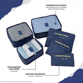 O Kit Organizador de Malas Laundry Pouch é o acessório perfeito para quem busca praticidade e organização em suas viagens. Com 6 peças diferentes, este kit permite separar e organizar seus pertences de maneira funcional e estética. Seja para peças secas ou molhadas, ele oferece segurança e comodidade, tornando suas viagens ainda mais agradáveis.