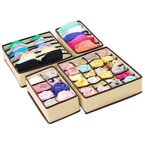 KIT Organizador de Meias Cuecas Calcinhas Roupas Íntimas para Gaveta Organizador de meias e roupas íntimas Basta posicionar o organizador em seu armário, closet ou arara e pronto. Você terá muito mais espaço em seu armário para organizar suas roupas e objetos da melhor maneira que preferir. Outro aspecto importante está no fato de que, além de organizar, o item permite que roupas e objetos ocupem muito menos espaço após o armazenamento. - Material: Tnt Reforçado; - Material extremamente resistente e durável; - Estrutura reforçada não amassa ou deforma ; - Tecido lavável; - Design inovador e moderno; 1 peça - 24 espaços 333010cm para calcinhas, meias, cuecas, gravatas, etc. 1 peça - 8 espaços 30169cm para calcinhas, meias, cuecas, gravatas, etc. 1 peça -7 espaços 301610cm para sutiãs, cachecois, etc. 1 peça - 6 espaços 331610cm para sutiãs, cachecois, etc.