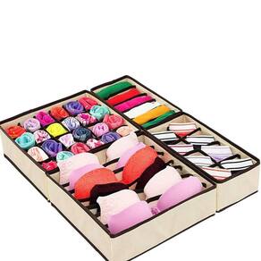 KIT Organizador de Meias Cuecas Calcinhas Roupas Íntimas para Gaveta Organizador de meias e roupas íntimas Basta posicionar o organizador em seu armário, closet ou arara e pronto. Você terá muito mais espaço em seu armário para organizar suas roupas e objetos da melhor maneira que preferir. Outro aspecto importante está no fato de que, além de organizar, o item permite que roupas e objetos ocupem muito menos espaço após o armazenamento. - Material: Tnt Reforçado; - Material extremamente resistente e durável; - Estrutura reforçada não amassa ou deforma ; - Tecido lavável; - Design inovador e moderno; 1 peça - 24 espaços 333010cm para calcinhas, meias, cuecas, gravatas, etc. 1 peça - 8 espaços 30169cm para calcinhas, meias, cuecas, gravatas, etc. 1 peça -7 espaços 301610cm para sutiãs, cachecois, etc. 1 peça - 6 espaços 331610cm para sutiãs, cachecois, etc.