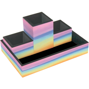 Organizador de mesa em MDF revestido com as nossas linda estampa Tie Dye e com acabamento interno em material aveludado.