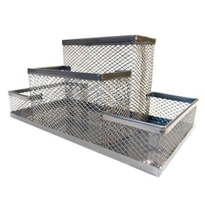 Kit Organizador de Mesa para Escritório de 4 Partições Prata Para quem gosta de ter tudo sempre à mão, com agilidade e praticidade. O organizador de escritório com 4 partições é ideal para você. Com ele, você vai evitar a perda de tempo procurando os itens de que precisa e que usa com frequência. Tudo estará a sua mão. O organizador de mesa de escritório tem 4 partições com tamanhos variados. Permitindo organiza canetas, lápis, clips, bloco de notas e pequenos objetos.