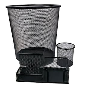 Benefícios: Maravilhoso kit / combo para o seu escritório, contando com uma lixeira, um organizador porta treco e um porta caneta. Fabricado com metal telado e maravilhoso acabamento. Kits prontos para envio. Temos também disponível este kit na cor cinza