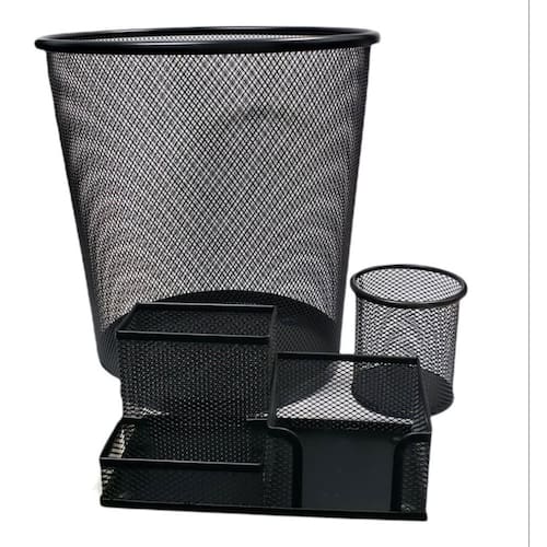 Benefícios: Maravilhoso kit / combo para o seu escritório, contando com uma lixeira, um organizador porta treco e um porta caneta. Fabricado com metal telado e maravilhoso acabamento. Kits prontos para envio. Temos também disponível este kit na cor cinza