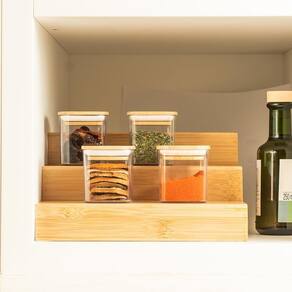 Kit Organizador Multinível Com 4 Potes Herméticos Em Bambu