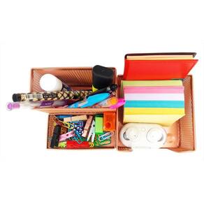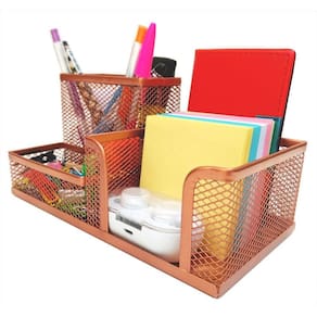 Para quem gosta de ter tudo sempre à mão, com agilidade e praticidade. O organizador de escritório com 3 partições é ideal para você. Com ele, você vai evitar a perda de tempo procurando os itens de que precisa e que usa com frequência. Tudo estará a sua mão. O organizador de mesa de escritório tem 3 partes com tamanhos variados. Permitindo organiza canetas, lápis, clips, bloco de notas e pequenos objetos. Cor: Rose Gold Material: Metal Tamanho: 20cm Largura 10cm Altura 10cm Comprimento Modelo: Kit organizador de mesa escritóriocom 3 partições
