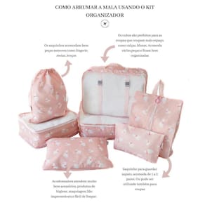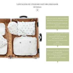 Os organizadores são a prova d'àgua e de material resistente, são tanto para adultos como para crianças e indicados para todo tipo de viagem, do final de semana à praia a tão esperada trip na europa, para viagens de avião, navio, ônibus ou carro, e se não está em viagem também uma boa opção para organizar o closet utilizando o kit.