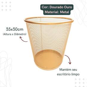 Kit escritório dourado ouro composto por: - 01 organizador de mesa escritório dourado ouro com 4 partições - 01 porta caneta, lápis dourado ouro - 01 lixeira aramada dourado ouro