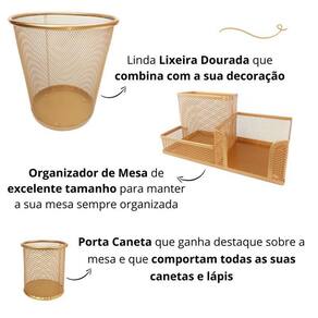 Kit organizador, porta caneta e lixeira escritório dourado Kit escritório dourado ouro com 3 unidades