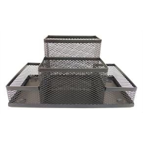 Benefícios do Produto - Acabamento lindo que ganha destaque sobre a mesa. - Produto super leve e compacto. - Comportam todas as suas canetas, lápis, clips e Bloco de Notas organizadamente. - Material de alta durabilidade e resistência. - Modelo aramado fácil de limpar. - Grande resistência à ferrugem e corrosão. - Não ocupa muito espaço na mesa. - Canetas, Lápis, Borracha, Clips e Bloco de Notas sempre ao seu alcance.
