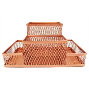 Kit Organizador Rose Gold com 4 Partes para Escritório Para quem gosta de ter tudo sempre à mão, com agilidade e praticidade. O organizador de escritório com 4 partições é ideal para você. Com ele, você vai evitar a perda de tempo procurando os itens de que precisa e que usa com frequência. Tudo estará a sua mão. O organizador de mesa de escritório tem 4 partes com tamanhos variados. permitindo organiza canetas, lápis, clips, bloco de notas e pequenos objetos. Cor: ROSE GOLD Material: METAL Tamanho: 20cm Largura 10cm Altura 10cm Comprimento Modelo: Kit organizador de mesa escritório com 4 partições Marca: Markys Store