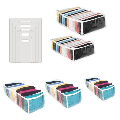 Kit Organizadores de Gaveta Colmeia 10pc + Gabarito Dobrador Kit Organizadores de Gaveta Colméia 10pc + Gabarito Dobrador Organize seu armário e gavetas;Dobre facilmente suas camisetas e roupas;Feito em material leve e com alta durabilidade;Maximize espaços e mantenha armários organizados;Diminua o espaço de armazenamento;Padronize seu guarda roupa;Dobre todos os tamanhos de camisetas e roupas.Camisetas, moletons, calças, toalhas agora poderão ser dobradas fácil e rapidamente.É a hora de ter as roupas bem passadas e ocupando menos espaço no armário. Informações técnicas Kit contendo 5 tamanhos de gabarito: PP: 20x10cmP: 25x13cmM: 28x16cmG: 32x20cmGG: 35x25cm Espessura: 3,0mmGramatura: 500grsMaterial: Plástico Polionda Semelhante ao de pasta escolar Não pode ser lavadoNão pode ficar exposto ao sol3 meses de garantia Kit contendo 5 tamanhos de organizador de gaveta pvc Ideal para organização de calcinhas, meias, cuecas, luvas ,lenços, sapatinhos de bebe, com diversos nichos tornando perfeita a organização de suas peças intimas com elegancia e segurança, trabalhado em um material para dar firmeza e resistencia ao acomodar suas peças, alem da sofisticação e praticidade. Medidas: Largura x Comprimento x Altura 10x34x10 14x34x10 16x34x10 20x34x10 25x34x10 Características Material: PVC transparente com Viés em TNT branco Características Gerais Cor: Transparente Marca:123organizei Marca: 123 Organizei