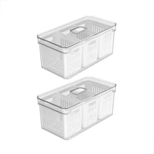 ASPEN DECOR F6278 KIT com 02 Organizador com Cesto Triplo 5L Clear Fresh - OU O organizador de geladeira Clear Fresh com cesto triplo 5L promove frescor prolongado para os alimentos, para uma rotina mais saudável e sem desperdícios. O sistema de ventilação mantém o nível de umidade ideal para cada alimento. A armazenagem com cestos evita que as frutas, verduras e legumes fiquem molhados após a lavagem, aumentando a durabilidade dos alimentos. Sinta o frescor de uma vida leve, saudável e organizada. Sua transparência facilita a visualização dos alimentos e a organização do ambiente. Produzido em material resistente PS Transparente , o organizador garante durabilidade, praticidade e fácil higienização. Transparência, beleza e cuidado com o alimento são características da linha Clear Fresh, perfeitas para auxiliar na organização da sua geladeira e facilitar o seu dia a dia. Livre de BPA. Lavar com sabão neutro e esponja macia. -não levar ao micro-ondas -não levar ao freezer -não levar à lava-louças Contém: 2 cesto com tampa 6 cestos independentes Medidas: 15 x 30 x 13cm Marca: Ou do vendedor: 90 dias Marca: Não Informado