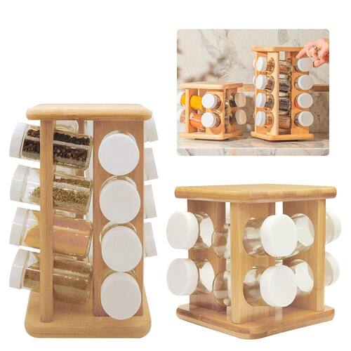 Kit Completo para Organização de Temperos - 01 Organizador Giratório 9 Peças + 01 Organizador Giratório 17 Peças Keep Bambu