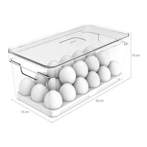 Kit Organizadores Geladeira Porta Ovos para 36 ovos E 2 Porta Legumes 5l Linha Clear Fresh F6089 Kit 3 Organizadores De Geladeira Organizador De Geladeira Com Respiradouro E Bandeja De Drenagem Caixa De Armazenamento Para Ovos Com Tampa Empilhável Conjunto Linha Clear Fresh OU : 90 dias / Peso: 1,03Kg Dimensões Do Organizador De Legumes: 30cm C x 15cm L x 13cm A Dimensões Área De Uso: 28m C x 14cm L x 12,5cm A Capacidade: 5 Litros. Dimensões Do Organizador Porta Ovos: 30cm C x 15cm L x 13cm A Grade Do Organizador Porta Ovos: 18 Compartimentos. Capacidade: 36 Ovos. Conteúdo: - 02 Organizador de geladeira para frutas legumes e vegetais; - 01 Organizador de geladeira porta-ovos 36 Ovos. Limpeza e Cuidados: - Lavar com água e sabão neutro utilizando esponja macia, seguido de pano seco; - Não utilizar produtos químicos ou abrasivos na limpeza. Evitar batidas. Detalhes do Produto: - O organizador para frutas e legumes dispõe de respiradouro regulável e de bandeja de drenagem que permite a circulação de ar e elimina os gases produzidos pelos alimentos, evitando decomposição precoce; - O organizador porta-ovos dispõe de bandeja interna removível com 18 cavidades, impedindo o atrito entre os ovos e permitindo o fluxo de ar interno; - Não suportam máquina de lavar; - Não suportam micro-ondas; - Livres de Bisphenol A; - Não suportam freezer; - Suportam geladeira; - Empilháveis. Marca: Não Informado