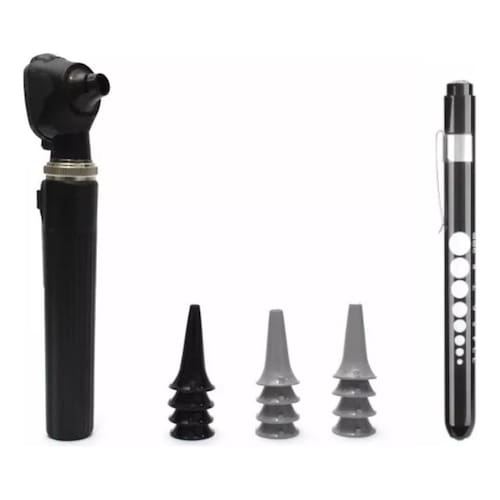 Otoscópio Mikatos Led - Com Espéculos + Estojo + Lanterna ClinicaOtoscópio Mini MikatosLanterna Clinica Incluso.Otoscópio mini Mikatos oferece um excelente custo benefício, é leve e pode ser levado no bolso.Concentrado e uma lente de aumento de 2,5x para uma análise com excelente nitidez. Possibilitando ao profissional a amplitude e iluminação suficientes para um diagnóstico preciso.É constituído de peças móveis com sistema de rosca (cabo e cabeçote) e de fácil limpeza.CARACTERÍSTICAS:01 - Cabo com botão liga/desliga;01- Presilha em aço inoxidável;01- Cabeçote com lente acrílica de 2,5x de aumento;02 Espéculos pretos esterilizáveis 33 mm;02 Espéculos pretos esterilizáveis 37 mm;05 Espéculos cinzas reutilizáveis 33 mm;05 Espéculos cinzas reutilizáveis 37 mm;01 Lâmpada 2,5Volts;01 Estojo para acondicionamento.01 Lanterna ClinicaRegistro na ANVISA 80218930006