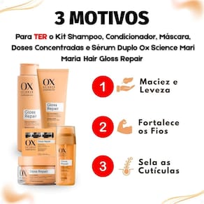 Kit Ox Science Mari Maria Hair Gloss Repair: Shampoo 250ml, Condicionador 200ml, Máscara Capilar 180g, 3 Doses Concentradas e Sérum Capilar 30ml