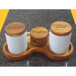 Pote Madeira Teca: 3,6cm x 8,2cm Capacidade 200ml