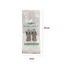 Contém: 1 pacote com 100un saquinhos Pipocas Flocos de Arroz Doce + 100 un saco de papel 9x27cm cosme e damião