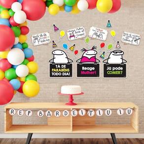 O tema é perfeito para qualquer público. Painel com o tema Flork Memes, ideal para colocar na parede atrás da mesa principal e deixar sua decoração mais completa, produto com a qualidade da marca Piffer Este produto encanta pela riqueza e delicadeza de detalhes, retratando com fidelidade os personagens e as principais caracteristicas do tema. O grande diferencial deste produto é a impressão em alta qualidade no EVA, simulando um quadro, no qual é possível personalizar utilizando giz escolar. Resistente à água, use um pano úmido para apagar e escrever novamente. Esse kit pode ser disposto em paredes na decoração da festa, pendurado como enfeite aéreo ou ainda enfeitar a mesa principal. De qualquer forma, você terá um belo efeito na decoração de sua festa de aniversário. E depois de enfeitar sua festa, sugerimos que esse kit seja utilizado para decorar portas ou paredes do quarto e, até mesmo, escolas e creches, ganham mais alegria e beleza quando decoradas com esse kit. Composição: Fabricado em E.V.A. Com impressão de alta definição. Conteúdo da Embalagem: 01 kit com 35 itens. Prazo de Validade: Indeterminado. Fabricado por Piffer Indústria e Comércio Artigos Para Festas LTDA. Marca: Não Informado Ean: 17899061537828
