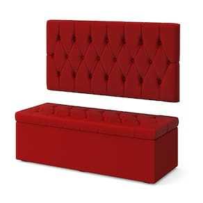 Kit Painel Centaurus 200 e Calçadeira Sagitarius Couro Aradecor - Vermelho