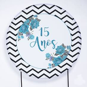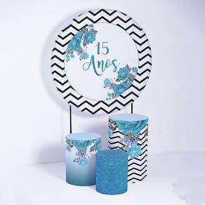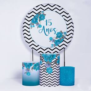 Kit Painel de Festa Redondo de 1,30m e Trio de Cilindros 15 Anos- Fera Print - Cor: Kit 15 anos 3