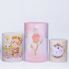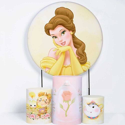 Kit Painel de Festa Redondo de 1,30m e Trio de Cilindros A Bela e a Fera - Fera Print - Cor: Kit Bela e a Fera 1