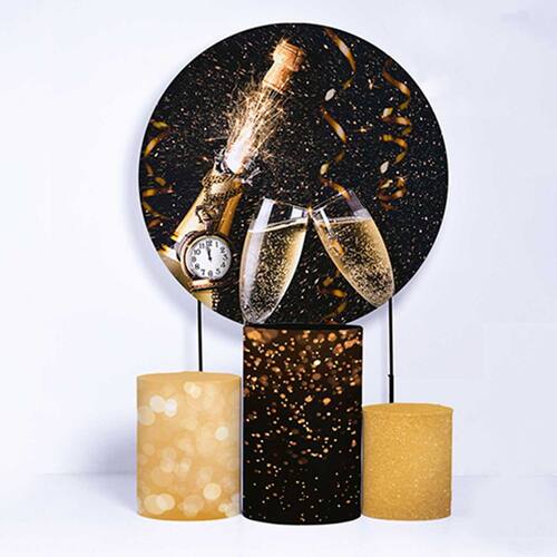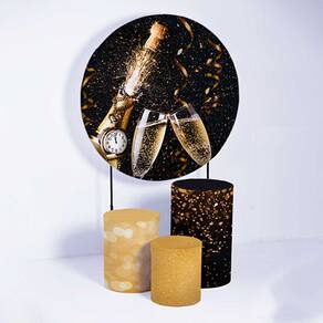 Kit Painel de Festa Redondo de 1,30m e Trio de Cilindros Ano Novo - Fera Print - Cor: Ano Novo 2