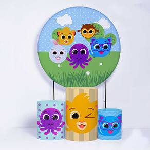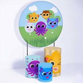 Kit Painel de Festa Redondo de 1,30m e Trio de Cilindros Bolo Fofo - Fera Print - Cor: Bolo Fofo 4