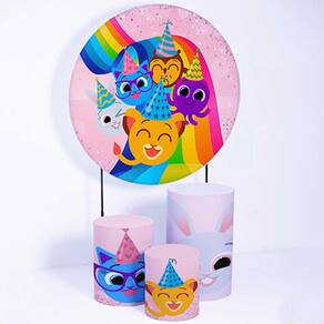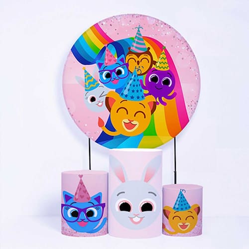 Kit Painel de Festa Redondo de 1,30m e Trio de Cilindros Bolo Fofo - Fera Print - Cor: Bolo Fofo 1