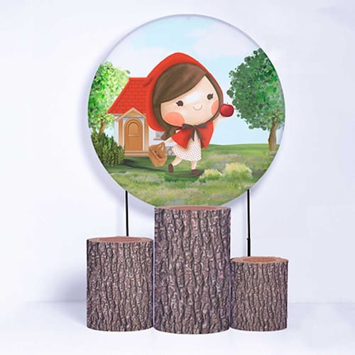 Kit Painel de Festa Redondo de 1,30m e Trio de Cilindros Chapeuzinho Vermelho - Fera Print - Cor: Chapeuzinho Vermelho 5