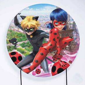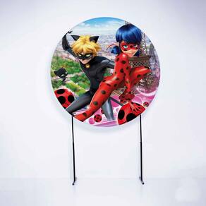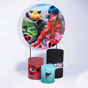 Kit Painel de Festa Redondo de 1,30m e Trio de Cilindros Heroína Vermelha - Fera Print - Cor: LadyBug 1