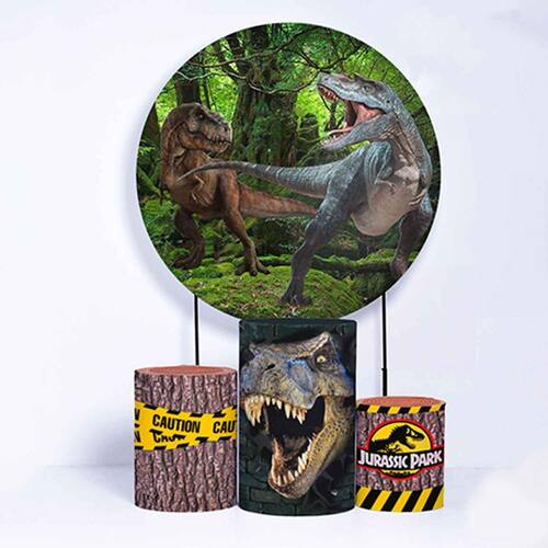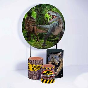 Kit Painel de Festa Redondo de 1,30m e Trio de Cilindros Jurassic Park - Fera Print - Cor: Jurassic Park 2