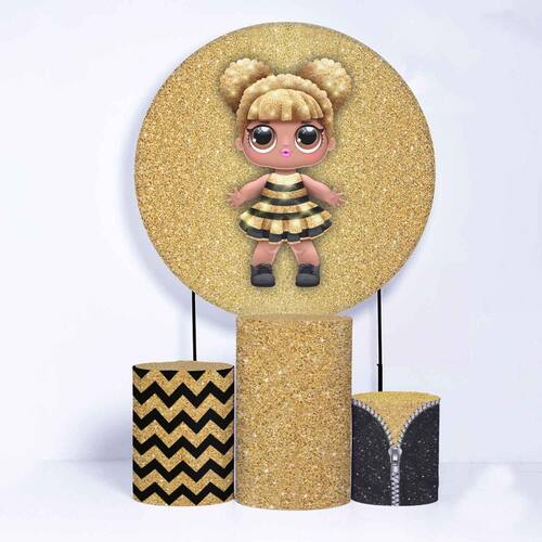 Kit Painel de Festa Redondo de 1,30m e Trio de Cilindros LOL - Fera Print - Cor: LOL 2