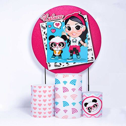 Kit Painel de Festa Redondo de 1,30m e Trio de Cilindros Luluca - Fera Print