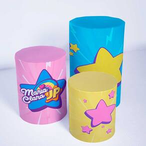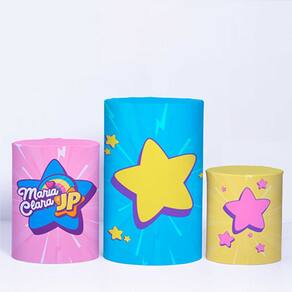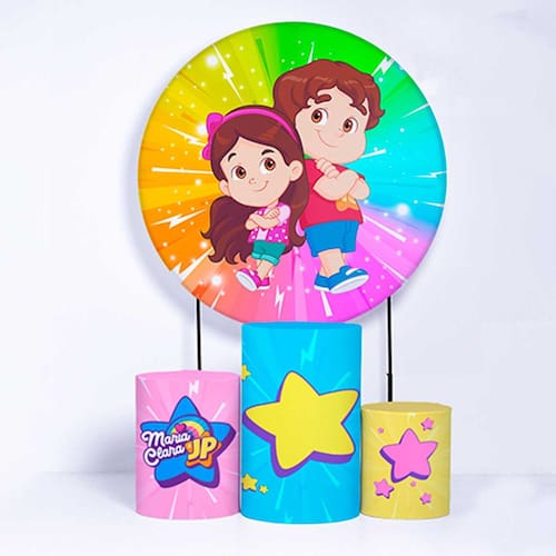 Kit Painel de Festa Redondo de 1,30m e Trio de Cilindros Maria Clara e JP - Fera Print