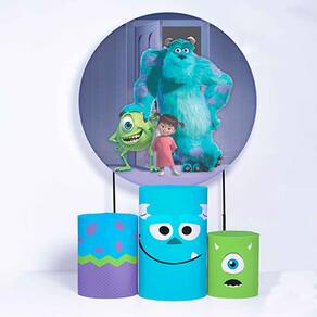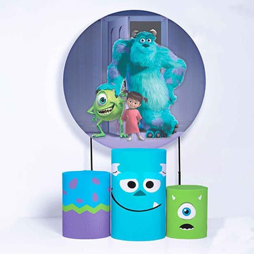 Kit Painel de Festa Redondo de 1,30m e Trio de Cilindros Monstros S.A - Fera Print - Cor: Monstros SA 8