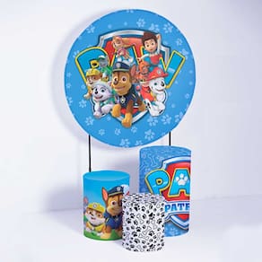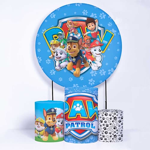Kit Painel de Festa Redondo de 1,30m e Trio de Cilindros Patrulha Canina - Fera Print - Cor: Patrulha Canina 3