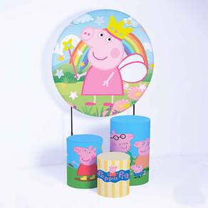 Kit Painel de Festa Redondo de 1,30m e Trio de Cilindros Peppa Pig - Fera Print - Cor: Peppa Pig 2