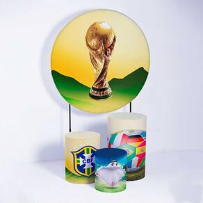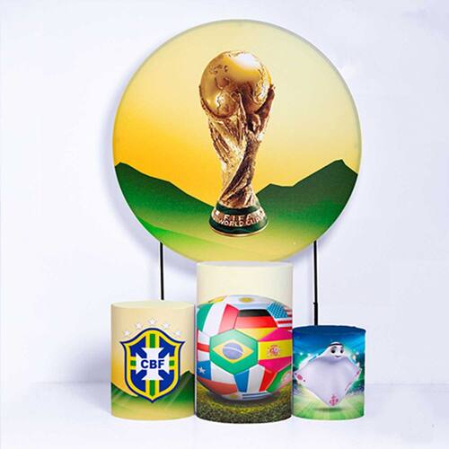 Kit Painel de Festa Redondo de 1,30m e Trio de Cilindros Seleção Brasileira - Fera Print - Cor: Seleção Brasileira 6