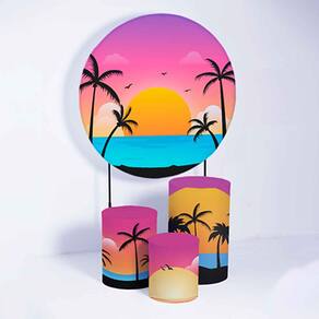 Kit Painel de Festa Redondo de 1,30m e Trio de Cilindros Tardezinha - Fera Print