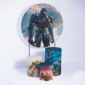 Kit Painel de Festa Redondo de 1,30m e Trio de Cilindros Transformers - Fera Print - Cor: Transformers 2