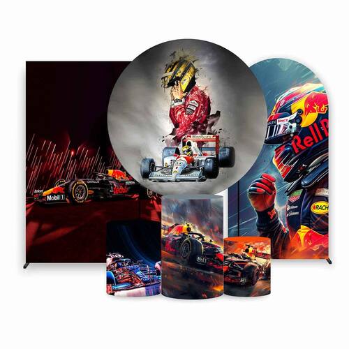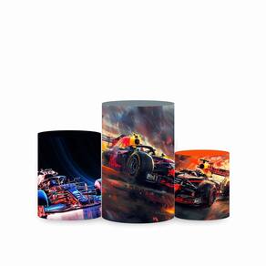 Kit Painel de Festa Redondo de 1,30m, Trio de Cilindros, Painel Lateral e Romano Fórmula 1 - Fera Print - Medidas do Painel: Painel Redondo 1,30 metros