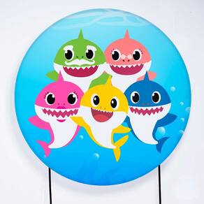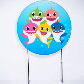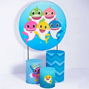Kit Painel de Festa Redondo de 1,50m e Trio de Cilindros Baby Shark - Fera Print - Cor: Baby Shark 2