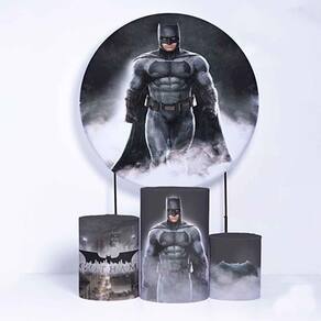 Kit Painel de Festa Redondo de 1,50m e Trio de Cilindros Batman - Fera Print - Cor: Heróis 4